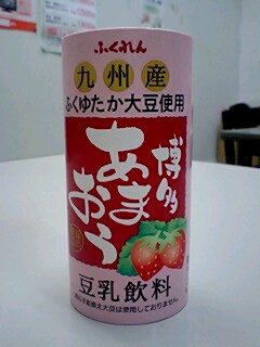 例のごとく、またバイト先で見つけてしまいました。一見いちご牛乳かと思うでしょ。でも実はこれ、豆乳なんだぜ…?あまおうの文字がでかすぎて豆乳の文字が一瞬迷子になるけど、でもこれ豆乳飲料なんだぜ…!!